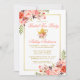 Placa de Convite de festas para Chá de panela Floral Dourado com Coral de Água - Parte de trás do Coral