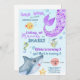 Convite Convidado para aniversário de sereia e tubarões.
