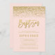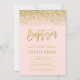 Quadrado rosa pincelado e convites para batismos femininos com brilho sujo. Convites modernos e glamourosos que são fáceis de personalizar. Designs são ilustrações/gráficos impressos planos - NÃO É UM GELO DOURADO REAL.