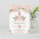 Convite para Chá de fraldas Floral Adorável com flores cor-de-água cor-de-rosa pincelada e confete dourado falso