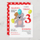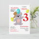 Ursinho de ursos koala australianos super fofos cercado por balões de festa e vestindo um chapéu tradicional e apontando para a idade do seu filho que é mostrado aqui como um para um terceiro aniversário, mas que se sente livre para editar isso para qualquer idade.