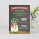 Chalkboard Country ou Convites de festas de Natal ocidentais. Convites de festas de Natal super bonitos com um grande galo de canas doces e galhos de garland descansando sobre um fardo de palha ou feno. todos sobre um fundo de chalkboard com tipografia divertida. Ilustração desenhada à mão por McBooboo. Excelente para qualquer ocasião que envolva um país chamado Natal