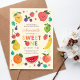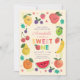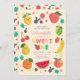 Berry Sweet First Birthday Invite apresenta frutas sorridentes e bonitas. Este brilhante e divertido modelo de aniversário é fácil de personalizar e faz uma festa de verão perfeita.