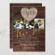 Celebre seu aniversário de casamento em estilo com estes elegantes e modernos convites para o aniversário de casamento. Eles apresentam um gráfico romântico gravado de coração de madeira para você adicionar iniciais de nomes de casais de marido e esposa. Mostre o que o amor verdadeiro significa com as suas fotos de casal. Você pode adicionar três fotos no total. Por que não adicionar uma foto de quando você se conheceu, quando você se casou e um de vocês dois agora por um impacto extra e para criar um convite especial de que seus convidados da festa de aniversário de casamento vão tesourar. Para obter assistência e suprimentos da parte correspondente, entre em contato com o designer aqui.