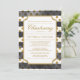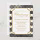 Aqui estão os convites batizantes modernos com glamour! Os convites têm uma estrutura ornamental branca e detalhes de texto dourado no topo do estilo de aquarela faixas pretas horizontais sobre bolinhas de brilho dourado. Você pode personalizar ou alterar as informações de seu gosto. O design é mais bonito com a opção de papel de estilo arredondado.