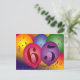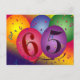 Fácil de personalizar 65 convites de cartão postal de festa de aniversário. Balões coloridos com fundo colorido do arco-íris e decorações de confete.