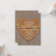 Este convite de casamento ocidental do país rústico tem corações de madeira rústicos empilhados uns sobre os outros e amarrados com um arco de fio impresso. O fundo do convite é um design de burlap impresso. A pá e o fio são apenas designs impressos. não é um tecido real, mas um convite impresso. Estes convites para casamentos temáticos são perfeitos para casamentos de vaqueiro, casamentos de campo, ou qualquer casamento rústico, especialmente aqueles que estão usando burlap em seus decores de casamento e detalhes de recepção. Este convite rústico dá a você a bela aparência de um convite em camadas elegante a uma fração do preço. Este é um estilo de convite rústico exclusivo encontrado aqui no Zazzle. Descontos de preços ao solicitar mais de 50 convites.