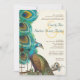 Convites para Casamento de Peacock, Estilo de Bilhete de Papel Castanho Kraft. Mostrado em papel kraft castanho para uma aparência rústica de celeiro, mas este mesmo convite é feito com um olhar de Gatsby Restrado 20s em uma papelaria metálica.