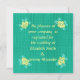 A pintura de quatro rosas amarelas, uma em cada esquina, sobre um fundo de palha verde e verde, é impressa na frente dos convites para o casamento. Sólido é a cor no verso. Ambos os lados têm detentores de modelos para que você se personalize facilmente com seus detalhes.