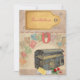 Convites de casamento com viagem estilo Vintage com tema de tema apresentando um tronco e um fundo de carimbo. Facilmente personalizável para que você possa adicionar todos os seus próprios detalhes.