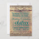Papel de Vintage de País Rústico com bordas de impressão de burlap e design de arco de fio (design). Este convite tem uma carta de azul-turquesa em um fundo marrom. Estas são excelentes para casamentos rupestres, casamentos de celeiro, e qualquer um que procura convites para casamento marrom e turquesa.