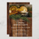 Um convite de festas festivo e acolhedor que apresenta um copo-claro quente rodeado de canela e laranjas com pinhões na madeira rústica. Bonita para uma celebração de Natal ou um aniversário de dezembro ou uma festa de janto.