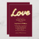 O amor escrito em uma luz de marquee sobre um fundo vermelho de tendências dá a este chá o convite vintage sparkle e o glamour. Role para baixo para ver a coleção completa do casamento. Se forem necessários itens adicionais para o seu evento, entre em contato conosco em prettyfancyinvites@gmail.com com sua solicitação.
