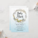 Bonito convite para chás de fraldas trigêmeos com um belo ninho de pássaros aquosos com a mãe e pai e um ninho com três ovos verdes pálidos colocados sobre fundo azul-ombre.
