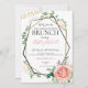 Convidado para Chás de panela Geométricos Dourados modernos. Estes convites de folhagem verde farão o truque! este convite personalizável apresenta uma estrutura geométrica moderna com brilho falsa de ouro e preto. As bordas são enfeitadas com folhagem verde como eucalipto, bagas e flores de rosa rosa e creme. Os lados são enfeitados com brilho de ouro falso. Isso faz um convite para a folhagem moderna do excelente. Encontre outros convites para casamento de madeira em https://www.zazzle.com/oddlotweddings Basta pressionar o botão "personalizar" para mais personalização.