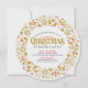 Erva de natal e palavra de glitter dourado elegante - Natal - sobre cinzas brancas de fundo e sotaques vermelhos. Convite de festas de janto de natal personalizável.