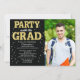 Festa moderna de brilho preto e dourado com o convite para festa de formatura de fotos de 2014 na classe formando. Disponível em nosso compro em uma variedade de cores populares e tradicionais da escola. Perfeito para uma festa de formando de menino ou anúncio de formando de menina.