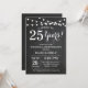 Convite de 25 Casamento de Aniversário. Fundo Chalkboard. Luzes de Corda. Preto e Branco. 1rua, segundo, 3º, 4º, 5, 10º, 15, 20, 25, 35º, 45º, 45º, 50º, 55º, 60º, 65º, 70, 75º, 80, Qualquer Ano. Aniversário Adulto. Mulher ou Festa de aniversário masculina. Para mais personalização, clique no botão "Personalizar" e use nossa ferramenta de design para modificar este modelo.
