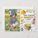 O convite mais completo para celebrar o seu aniversário de Halloween. Convide pessoas para a sua festa com este design incrível. Gato bonito saindo da abóbora com faixa de halloween, luas e morcegos é uma combinação tão excelente para o aniversário das crianças!