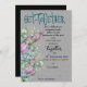 Experimente a elegância do nosso convite anual de reunião, adornada com buquês roxos e azuis-claro de flor-d-água em um fundo preto impressionante. Perfeito para reuniões memoráveis, na moda.