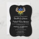 Este convite rústico da moda é perfeito para o casamento no campo, casamento de celeiros, ou até mesmo casamento de caipira. Design apresenta grandes galhadas com um buquê de flores azuis, girassóis amarelos e samambaias verdes. No fundo estão flores azuis desenhadas à mão. **Por favor, encontre produtos de casamento na minha loja!