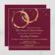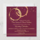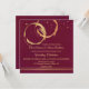 Um convite romântico para o casamento, que inclui dois anéis de mancha de vinho intersetados em ouro rosa e ouro com confete em fundo de burgundy de marsala. Este convite também tem um cartão RSVP. Bonita para um casamento de vinhedo ou vinhedo.