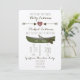 Um convite de casamento rústico com ilustração de um coração entre duas setas e uma canoa verde. Personalize o texto.