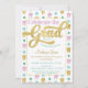 Um convite para formatura dentária divertido com dentes e estrelas. Em rosa, branca, turquesa e ouro, perfeito para o seu formando Dentista ou Higienista Dental.