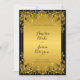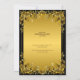 Convite luxuoso com fundo preto e quadro de ouro talhado com flores e folhas. Este elegante modelo de convite para casamento é perfeito para convidar convidados. Basta inserir os detalhes de seu evento nesta modelo para criar um convite único.