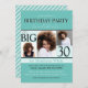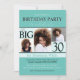 Crie uma festa personalizada com estes Convites para aniversário de 30 anos Aqua Tiffany Modernos. Adicione 3 fotos, personalize todo o texto do convite. Mude o ano e comemore uma 16ª, 21rua, 40ª, 50ª, 60ª ou qualquer festa de aniversário de criança! Personalize todos os elementos do design para criar o seu convite perfeito para o tema e o convite para o tema azul aqua! A combinação perfeita de tipografia e design geométrica simples faz disso um favorito versátil!
