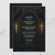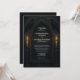 Dramático e misterioso, este convite de casamento gótico apresenta um arco de velas flanqueado por dois corvos, perfeito para amantes de romance escuro e elegância magnética. Inspirado por catedrais medievais e simbolismo vitoriano, ele dá o tom para uma celebração maravilhosamente bonita.