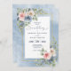 Este design tem buquês cor-de-rosa azul, rosa e branco suave empoeirados nos cantos de um plano de fundo de aquarela azul macio, com texto emoldurado por uma falso estrutura dourada. Feminina e elegante, este cartão faz parte do Dusty Pink, Blue & White Roses Wedding Suite de cartas criadas pela Simplesmente Farmhouse Press.