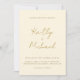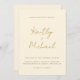Este convite para casamento simples e moderno de ouro e marfim / creme apresenta seus nomes em um roteiro de escrita manual confuso. É moderno e minimalista.