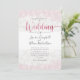 Design floral cor-de-rosa, que é mínimo e sofisticado. Flor silvestre bonito e delicada, arranjada num padrão sobre fundo rosa e bege, com letra de água e textura de cor suja. Este design original foi criado para o seu dia especial. Fácil de personalizar com seus próprios detalhes exclusivos.
