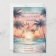 Um convite de casamento elegante com palmeiras e um espantoso fundo solar. Esse design usa cores pastéis macios e efeito aquarela para evocar uma atmosfera romântica, com fontes cursivas acrescentando um toque de sofisticação.