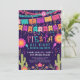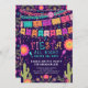 Festa colorida durante toda a noite, sesta de solteira durante todo o dia, convidada com bandeiras de bunting, flores, confetti e cacto