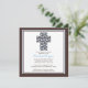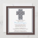 Quadrado popular Cruz marrom contemporânea com flores azuis convite para batismo ou convite batizante para um bebê batismo.