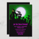O Ceifador Grim em uma sepultura com lua de cheio e fundo verde. Muito divertido e assustador design para o seu convite para a festa de Halloween.