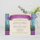 Convites de casamento de contadores de fadas desenhados com uma faixa roxa e dourada e as palavras "Era uma vez...", castela à distância sobre um gradiente azul para castanho, e seus detalhes de casamento sobre uma ilustração de textura de papel antigo e tatuado.