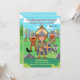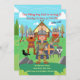 Celebre o aniversário do seu pequeno menino Viking com este convite colorido! Ele apresenta um menino guerreiro Viking com capacete com chifres, escudo de madeira e machado. Ele e alguns de seus amigos da tripulação do navio estão posando na frente de uma casa Viking. Ao fundo, há uma paisagem escandinava e uma casa com telhado de palha Viking decorada com uma caveira e cabeças de dragão. Na frente, há um letreiro que diz FESTA, o lobo de estimação do menino e balões amarelos. É ideal para uma festa de aniversário com tema Viking! Este convite de aniversário de menino é facilmente personalizado para o seu evento, adicionando seus detalhes.