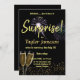 A combinação clássica de dourado e preto para um convite de festa surpresa com opção de resposta por código QR. muito simples, mas bonito e fácil de personalizar.