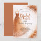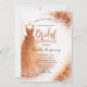 Elegant copper bridal shower design featuring a refined bridesmaid dress illustration with soft floral accents. A warm and refined style ideal for fall, rustic, or modern bridal shower celebrations with a rich copper palette.