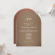 This modern copper brown arched wedding invitation features a refined minimalist design with a warm brushed copper and brown palette, inspired by the Copper & Browns wedding trend for 2026. The sculptural arched shape and elegant typography create a sophisticated, editorial look ideal for contemporary and design-forward weddings.