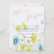 Convite Cópulas Amarelas Rústicas Simples Azuis Aquarela
