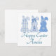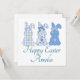 Três coelhos fofos personalizados "Felz pascoa". Três coelhos em bolinhas, xadrez e floral em azul e branco o farão excelente para a dádiva de Páscoa.