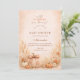 A warm and cozy fall baby shower design featuring a hand-painted watercolor pumpkin surrounded by soft peach florals, golden leaves, and delicate autumn accents. The earthy orange palette and elegant arch layout create a refined harvest aesthetic that feels timeless and inviting. Perfect for an autumn celebration, a neutral fall theme, or a charming “Little Pumpkin” baby shower with rustic floral details.