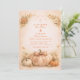 Warm, romantic, and effortlessly seasonal, this fall wedding design features a rich heirloom pumpkin surrounded by soft florals and delicate autumn foliage. A graceful botanical arch frames the wording, creating a balanced and elegant composition with subtle rustic charm. The warm neutral background and burnt orange accents make it perfect for an outdoor autumn celebration, barn wedding, or harvest-inspired event.