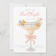 This bachelorette party invitation has a margarita glass with a pink bow. All the important weekend details are on the back side. The back has a coordinating Mexican tile pattern. Colors include blue, yellow, pink, white and coral.