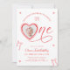 Celebrate your little one’s first birthday with this coquette-inspired heart invitation, featuring delicate pink bows, sweet hand-drawn details, and a romantic Valentine-style design.