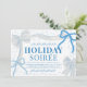 Celebre a temporada em estilo com este charmoso e inspirado em coquetes Convite de festas de Natal Feriado Soirée, com arcos desenhados à mão, cores suaves e um romântico design cheio de fita. A frente apresenta quatro arcos desenhados à mão — duas fitas em negrito com faixas em azul-bebê, mais dois acentos menores em azul-céu clássico e azul-claro. O dorso oferece um fundo azul gelado refrescante com um padrão de arco delicado.
